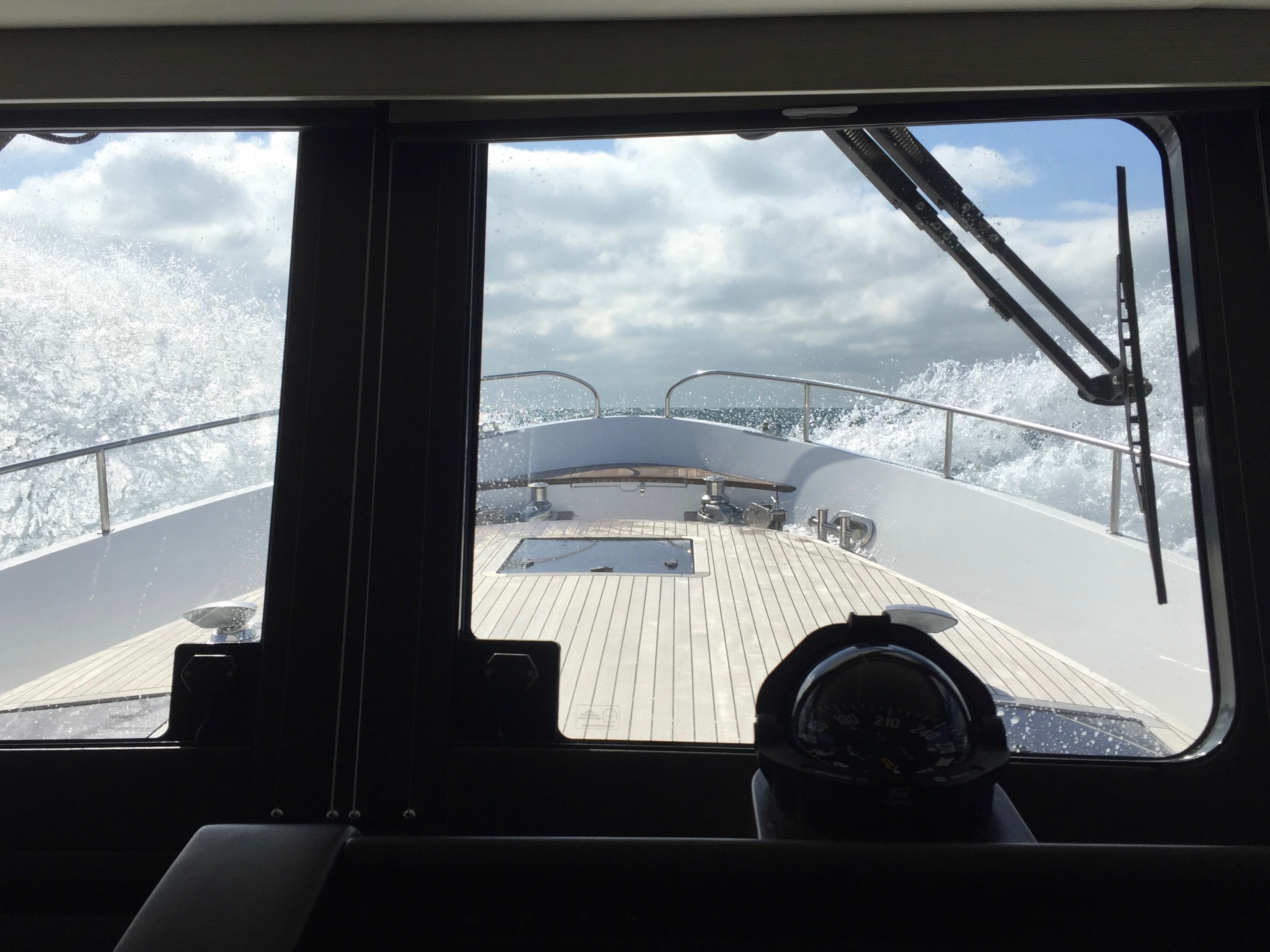 We arrived in St Peter Port circa 15.00 (a 6hr crossing) in bright sunshine. A quick wash down and she’s ready for her owners’ arrival in the morning. Guernsey to Jersey was a breeze, flat calm, cruising gently at 17knots with a beaming smile from MARESIA’S owner. A lovely end to a very interesting test and delivery home.